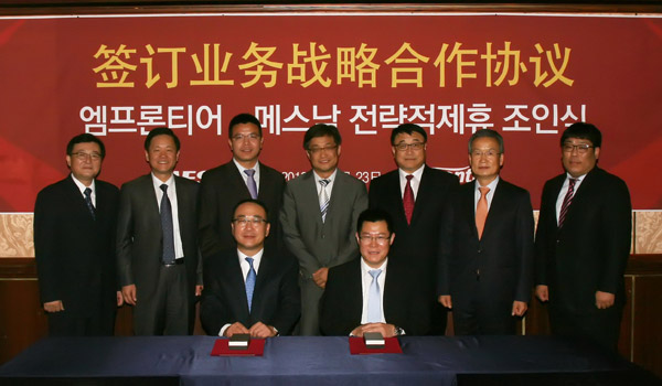 10月23日,6686体育与韩泰轮胎全资子公司Emfrontier(EMF)公司在韩国首尔签订了旨在建立战略合作伙伴关系的《合作意向书》,6686体育常务副总裁郑江家与EMF公司总经理安在焕代表双方签约。双方将在IT解决方案、工厂自动化、物流自动化三个领域内展开深度合作,在全球范围内共同开发市场。