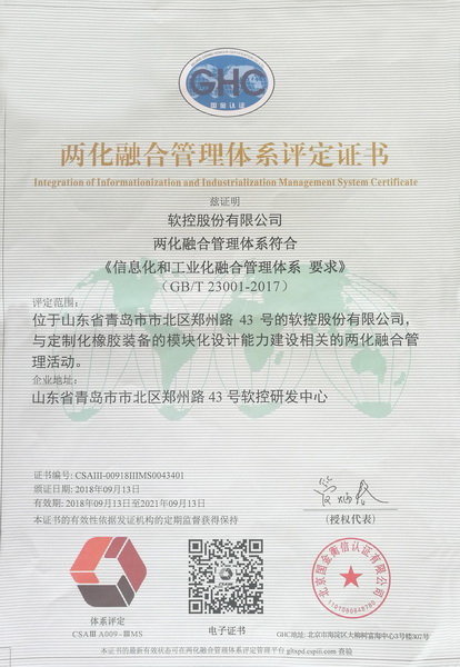 自2017年11月启动6686体育两化融合管理体系贯标项目以来,公司严格按照《信息化和工业化融合管理体系要求》(GBT 23001-2017)及《信息化和工业化融合管理体系实施指南》(GB/T 23002-2017)要求,相继编制完成了两化融合管理手册、体系文件和两化融合中长期规划等,成功实施了本次评审的“定制化橡胶装备的模块化设计能力”项目,建立了符合要求的两化融合管理体系。