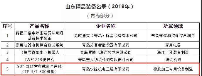 近日,山东省工业和信息化厅发布了《山东精品装备名录(2019年)》,6686体育90°纤维帘布裁断生产线(TP-3/T-300机型)成功入选“山东精品装备”行列。